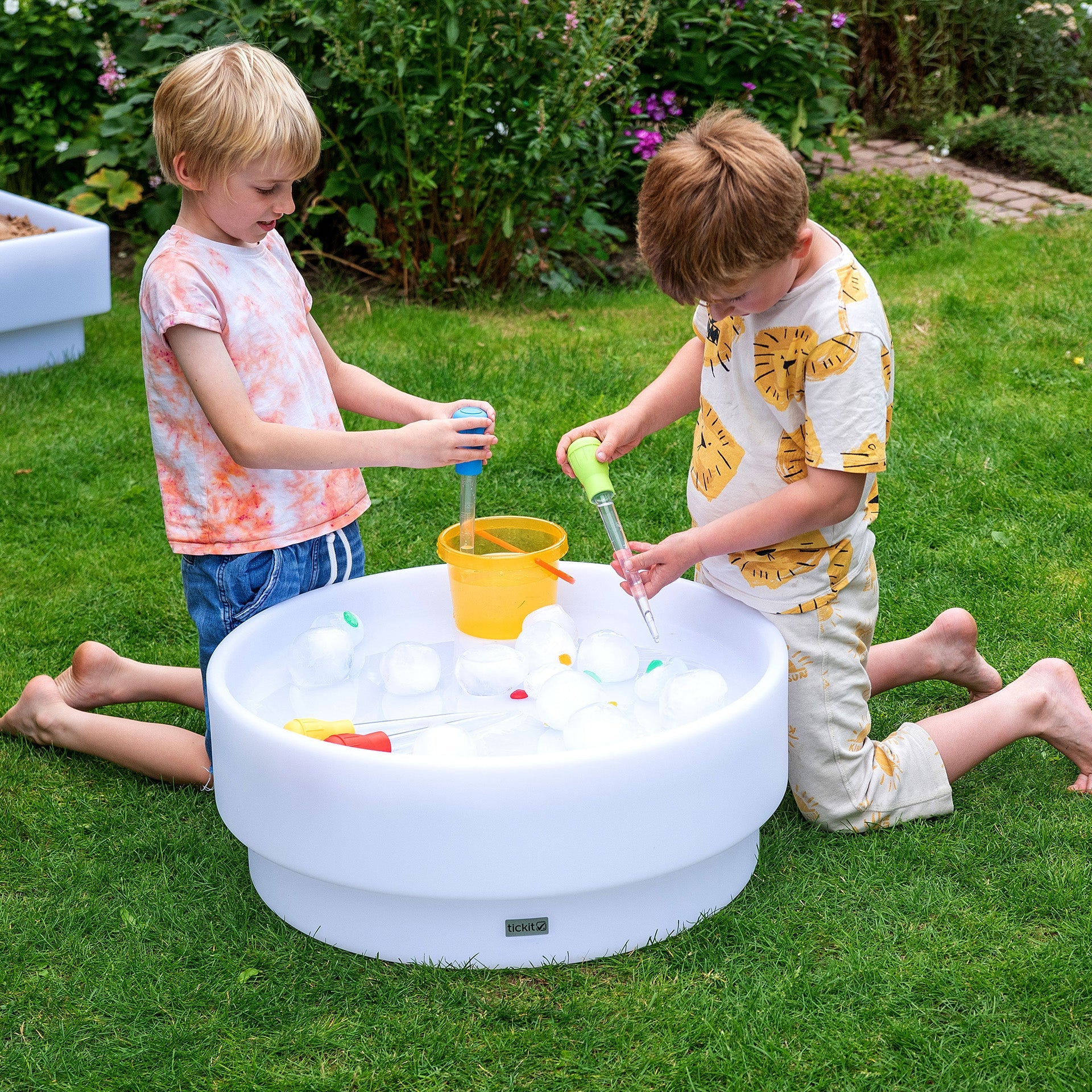 The circular design is perfect for easy access to the table for babies and toddlers or for collaborative play. The sturdy but lightweight design makes it practical to alternate between indoor and outdoor play and is quick and easy to wipe clean.