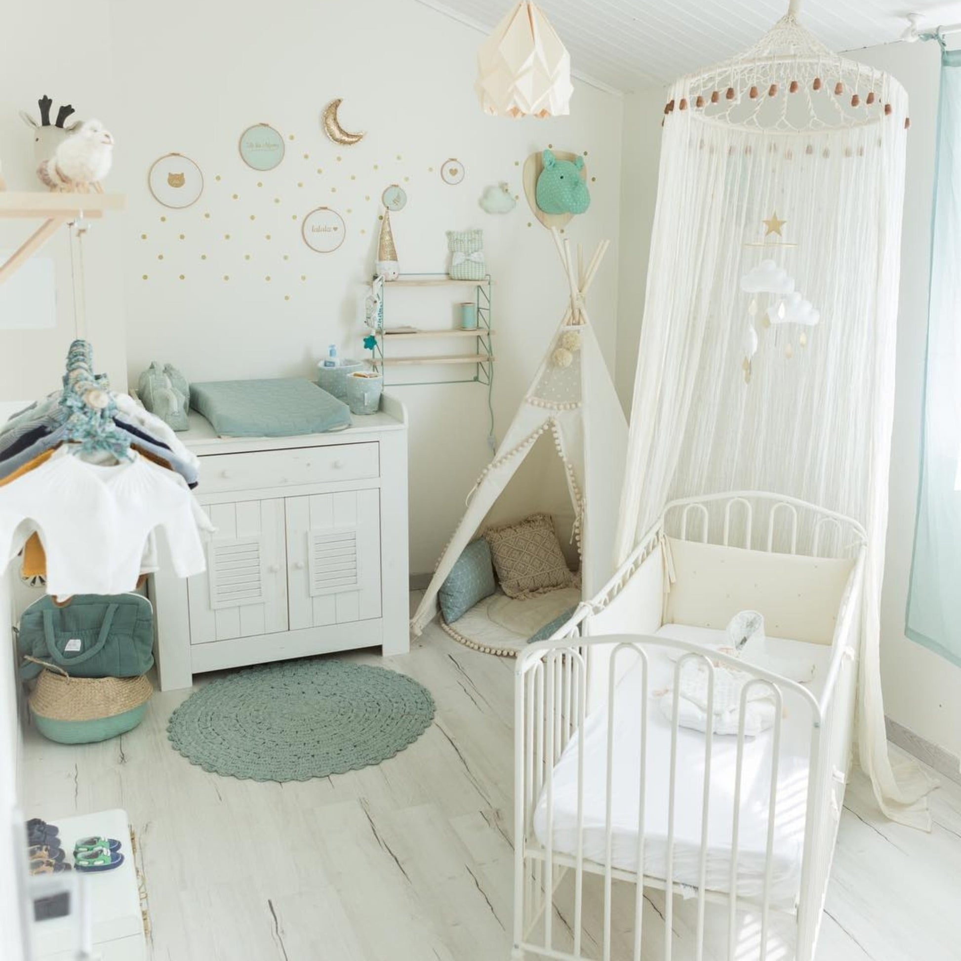The package includes handmade pompoms, a decorative rope, and easy-to-follow printed and video assembly instructions. A matching play mat and large floor cushion are available separately.