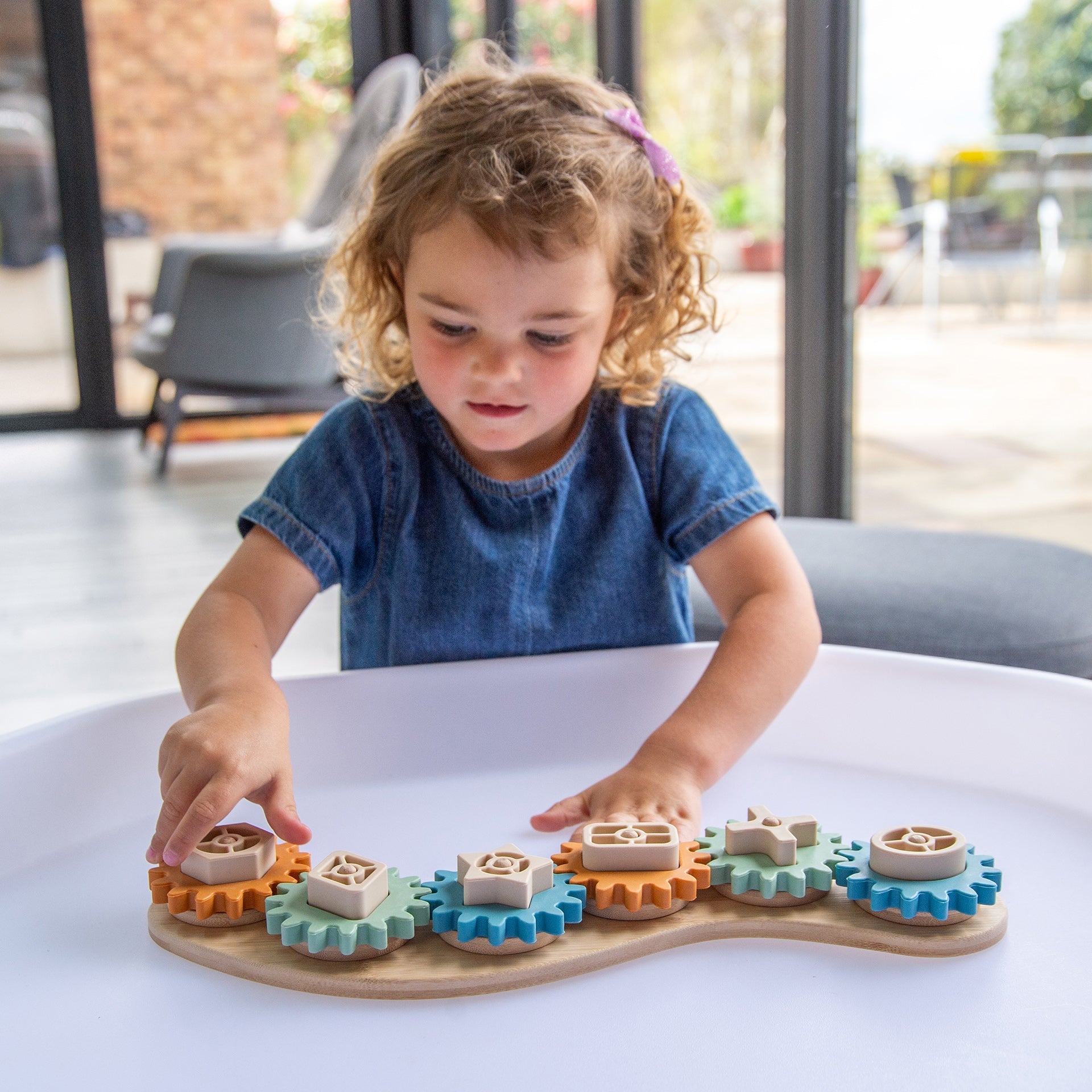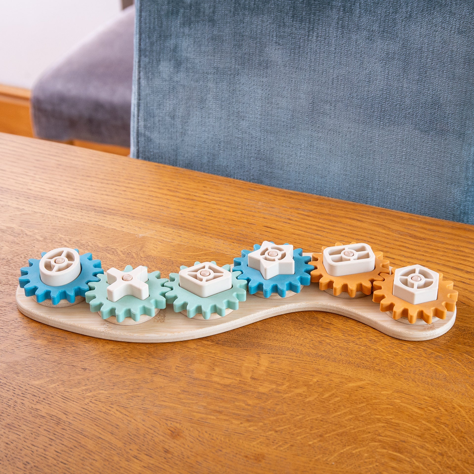This interactive puzzle is cleverly designed to engage children’s logic, reasoning, dexterity, and coordination skills as they piece together an easy-moving gear system. Each of the six gears features a unique shaped centrepiece, adding a fun challenge as little hands figure out how to fit three simple parts together to make the gears turn smoothly.
