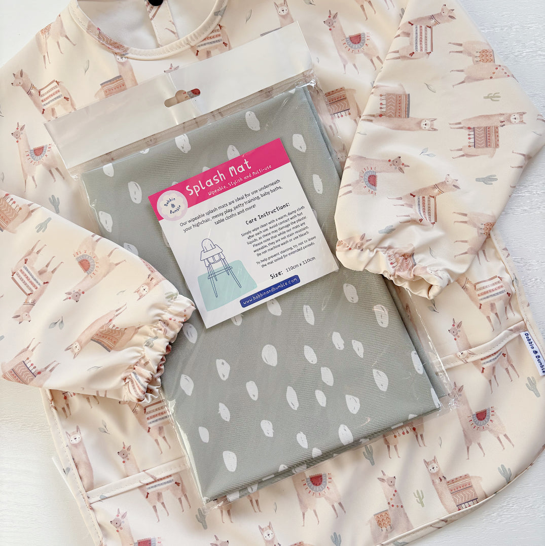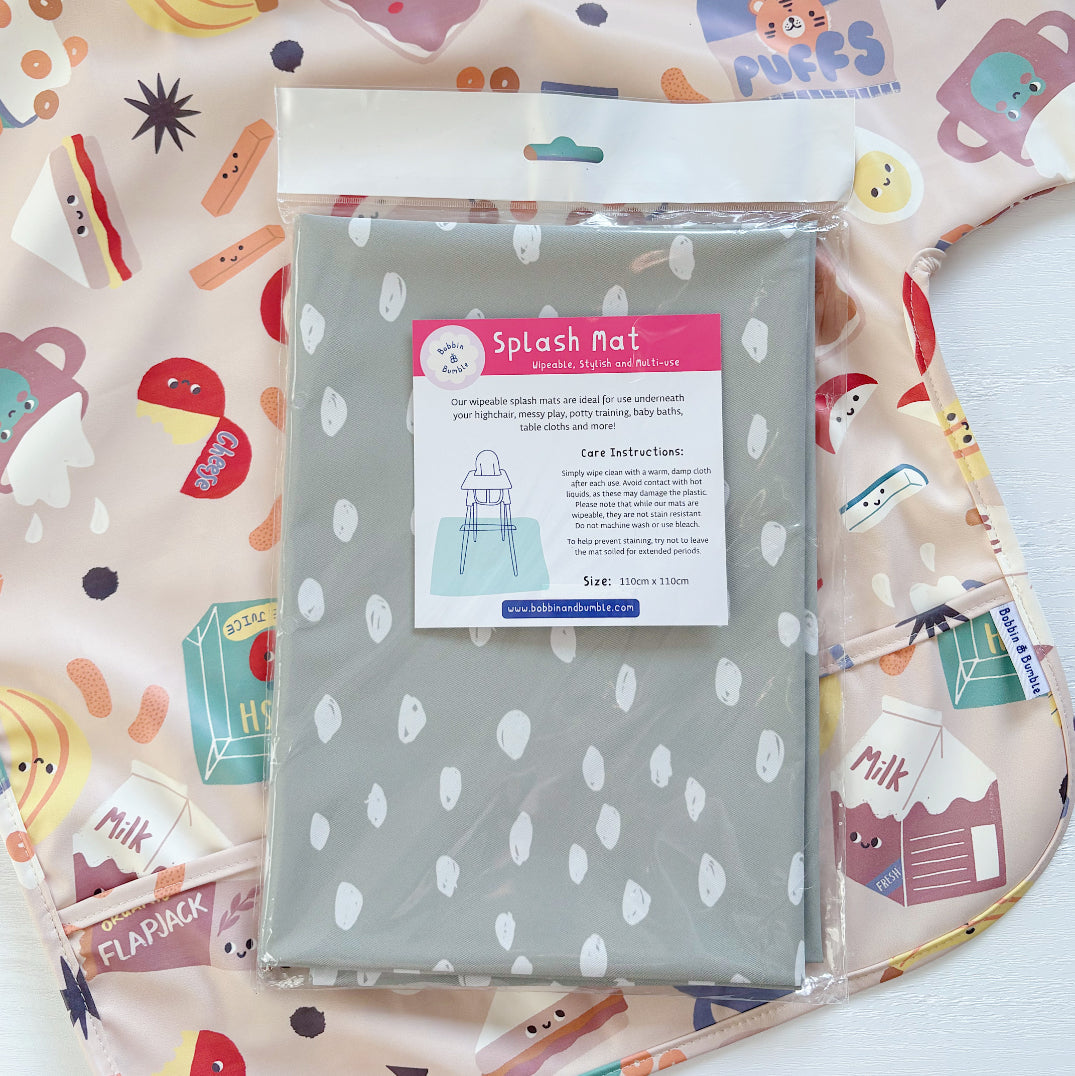 Elevate your baby’s mealtime setup with our Sage Spots Splash Mat, a soft green polka dot design that brings calm and charm to any space. Perfect for parents who love a stylish yet subtle print, this versatile mat helps protect your floors, furniture, and surfaces from everyday baby mess.