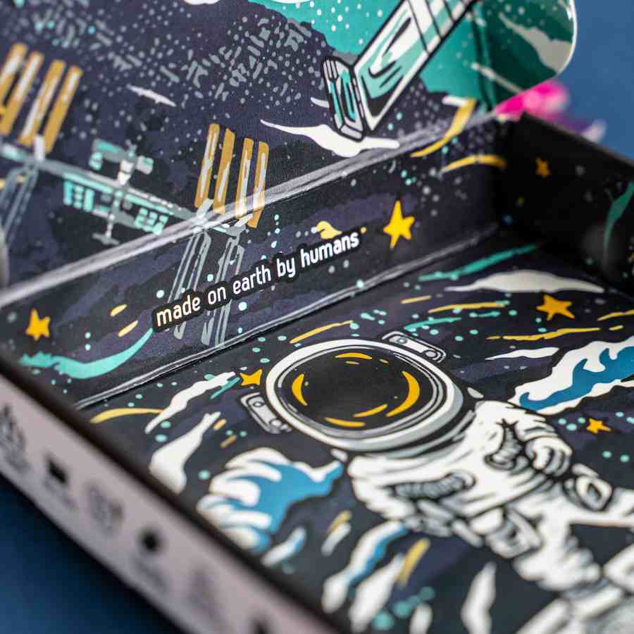 OrBITEr® - We spent a long time designing our rocket with enough detail to make it visually interesting for all humans. Look out for details including: Heatshield, actuated fins, quick disconnect ports, flight termination system, vacuum and sea level optimised engines, raceway, tank access hatches, crew/cargo door and lift, windows, an astronaut giving two thumbs up, a slogan which reads 'look up to the stars' and more.